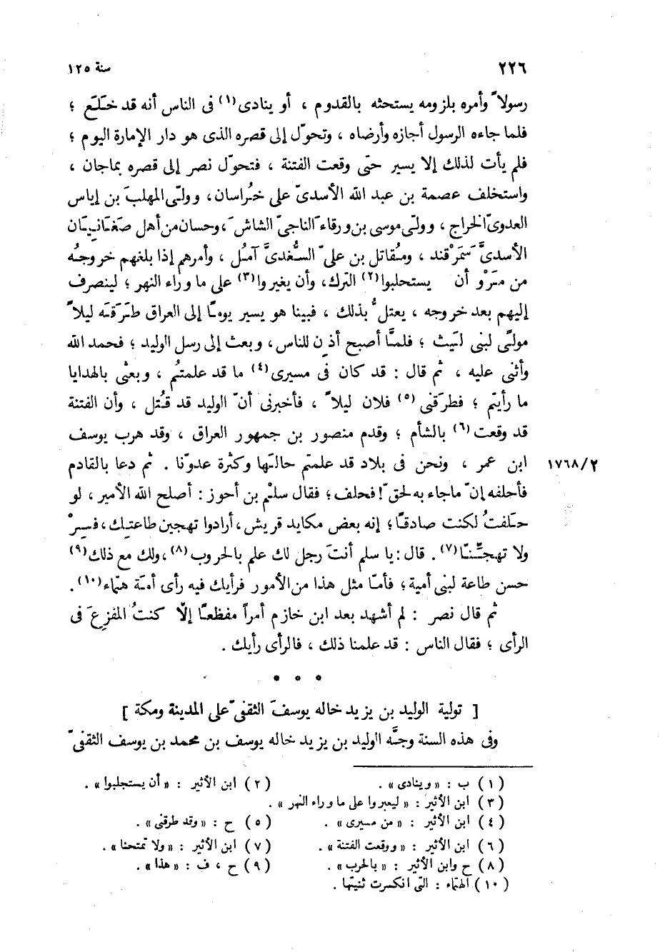 . توليه الوليد بن يزيد خاله يوسف الثقفى على المدينة ومكة