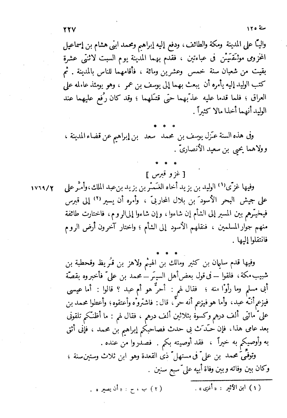 وفيها غزى الوليد بْن يزيد أخاه الغمر بْن يزيد بْن عبد الملك، وأمر على جيش البحر الأسود بْن بلال المحاربي، وأمره أن يسير إلى قبرس فيخيرهم بين المسير إلى الشام إن شاءوا، وإن شاءوا إلى الروم، فاختارت طائفة منهم جوار المسلمين، فنقلهم الأسود إلى الشام، واختار آخرون أرض الروم فانتقلوا إليها.