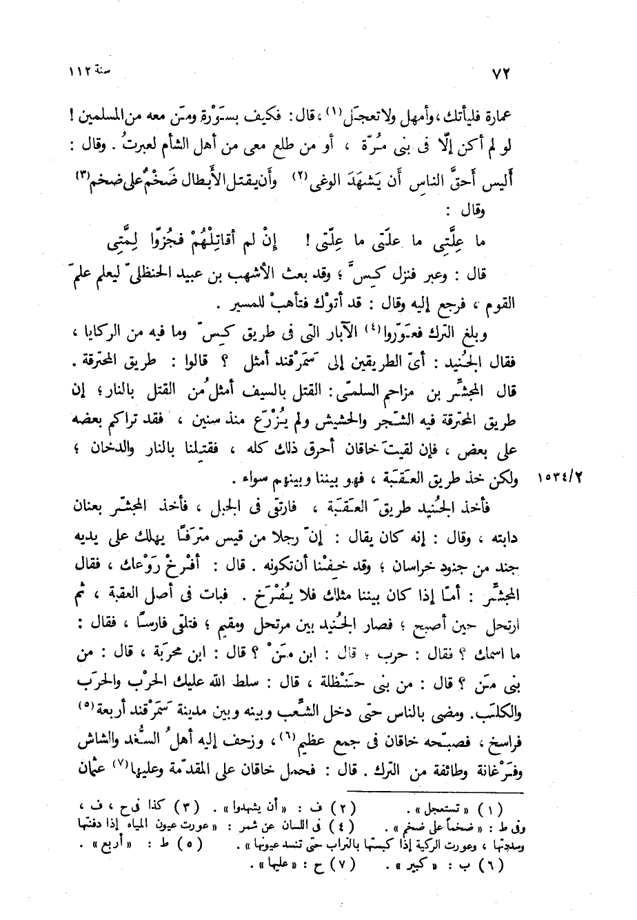 وبلغ الترك فعوروا الآبار التي في طريق كس وما فيه من الركايا، فقال الجنيد: أي الطريقين إلى سمرقند أمثل؟ قالوا: طريق المحترقة.