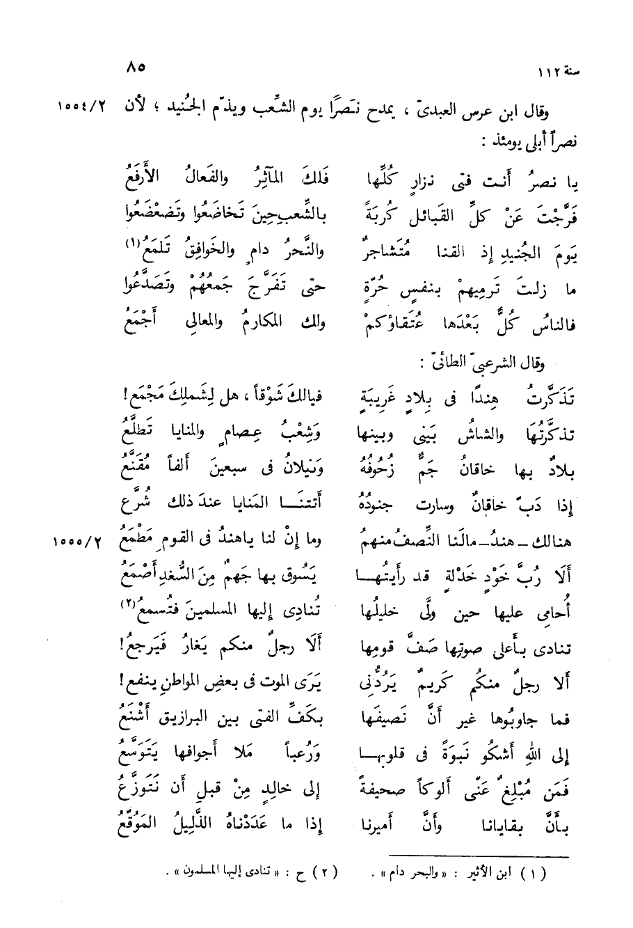 وقال ابن عرس العبدي، يمدح نصرا يوم الشعب ويذم الجنيد، لأن نصرا أبلى يومئذ: