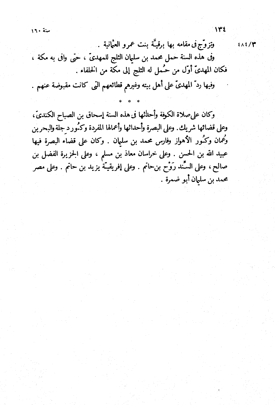وفي هذه السنة حمل محمد بْن سليمان الثلج للمهدي، حتى وافى به مكة، فكان المهدي أول من حمل له الثلج إلى مكة من الخلفاء.