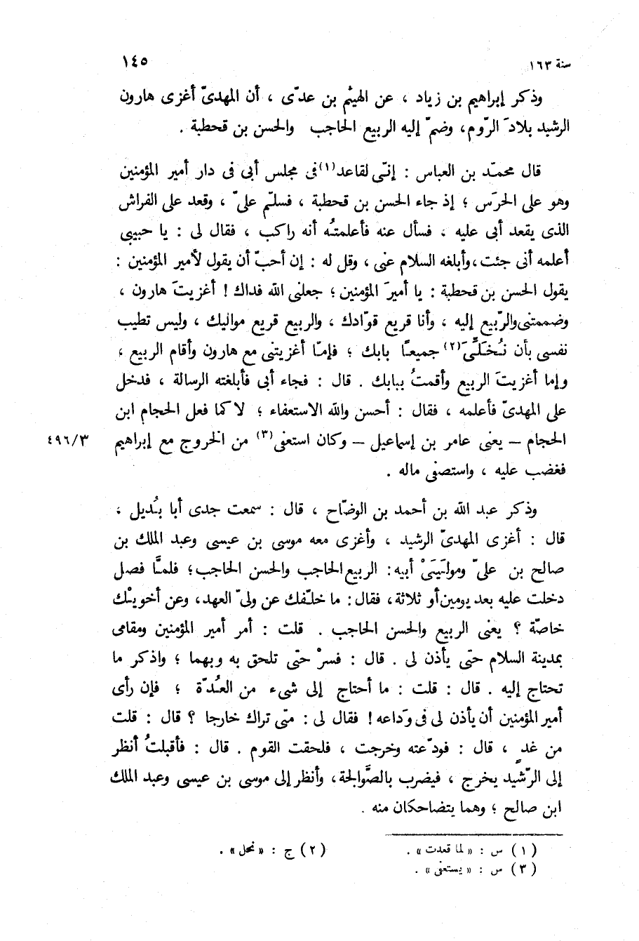 وذكر إبراهيم بْن زياد، عن الهيثم بْن عدي، أن المهدي أغزى هارون الرشيد بلاد الروم، وضم إليه الربيع الحاجب والحسن بْن قحطبة.