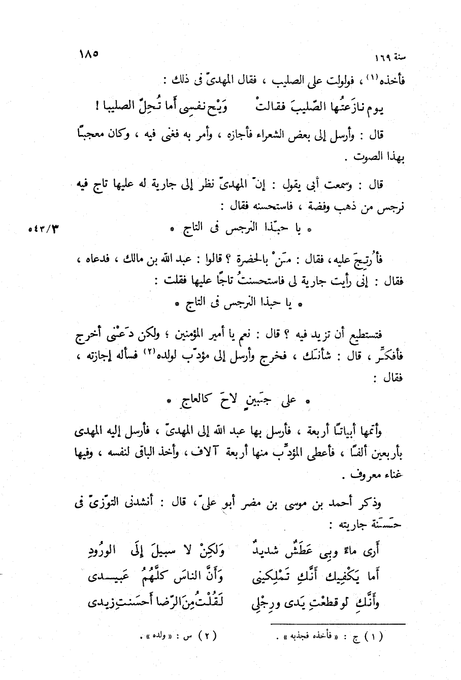 فأخذه، فولولت على الصليب، فقال المهدي في ذلك: