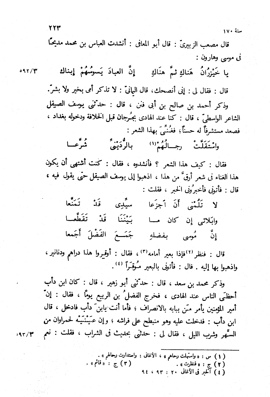 قَالَ مصعب الزبيري: قَالَ أبو المعافى: أنشدت العباس بْن محمد مديحا في موسى وهارون: