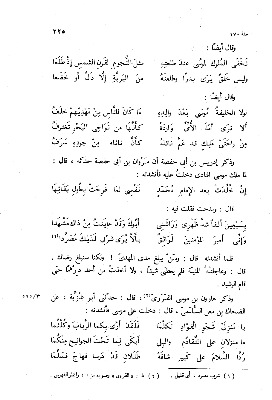 وذكر هارون بن موسى الفروى، قَالَ: حدثني أبو غزية، عن الضحاك بْن معن السلمي، قَالَ: دخلت على موسى فأنشدته: