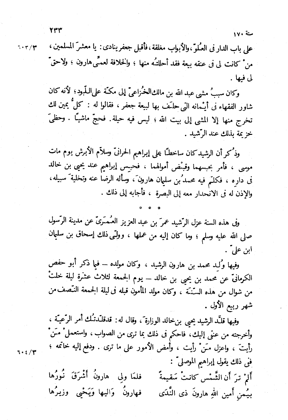 ألم تر أن الشمس كانت سقيمة ... فلما ولي هارون أشرق نورها