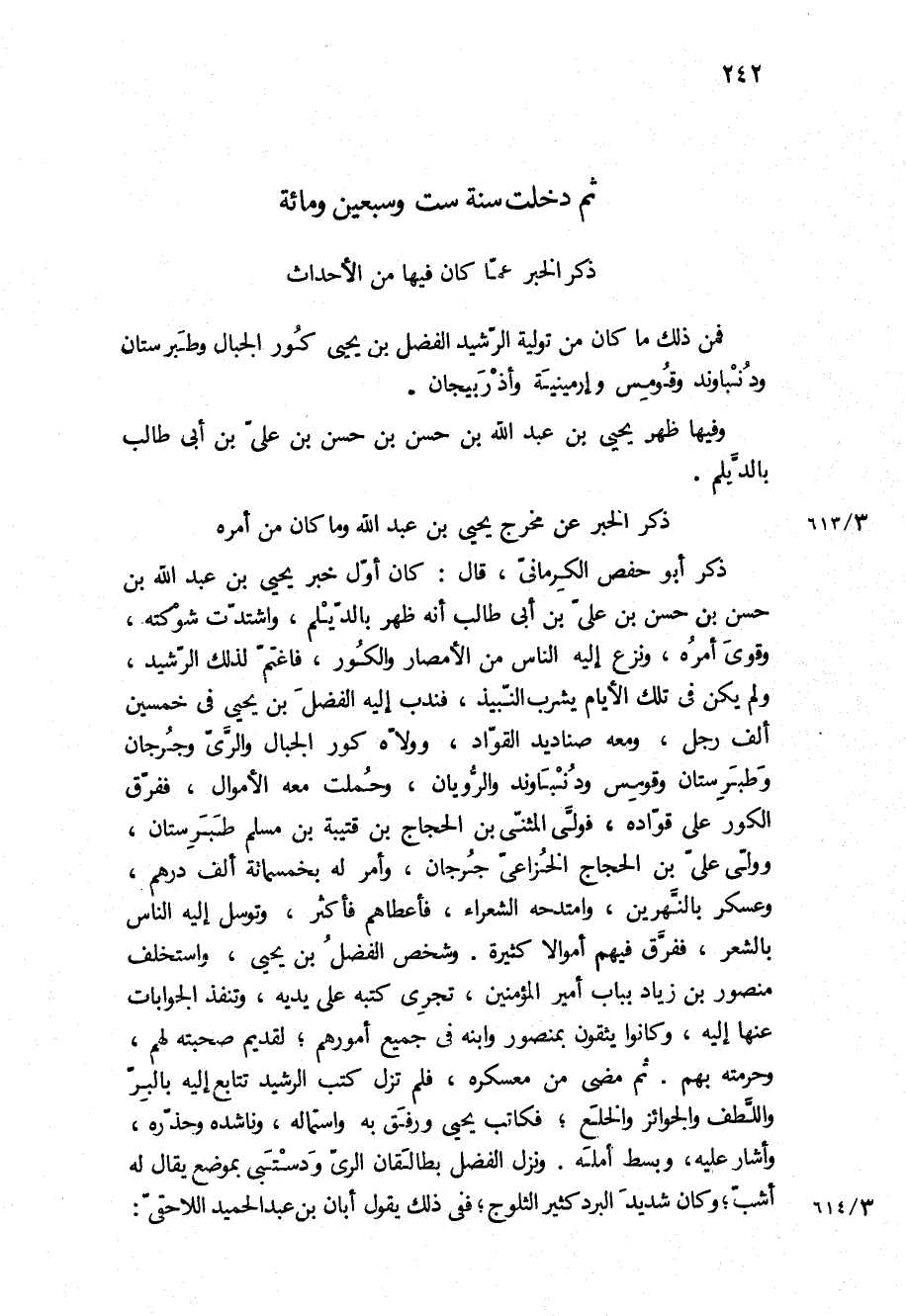 (ذكر الخبر عما كَانَ فِيهَا من الأحداث) فمن ذلك ما كان من تولية الرشيد الفضل بْن يحيى كور الجبال وطبرستان ودنباوند وقومس وأرمينية وأذربيجان.