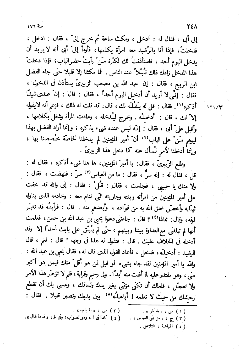 وطلع الزبيري، فقال: يا امير المؤمنين، هاهنا شيء أذكره، فقال له: