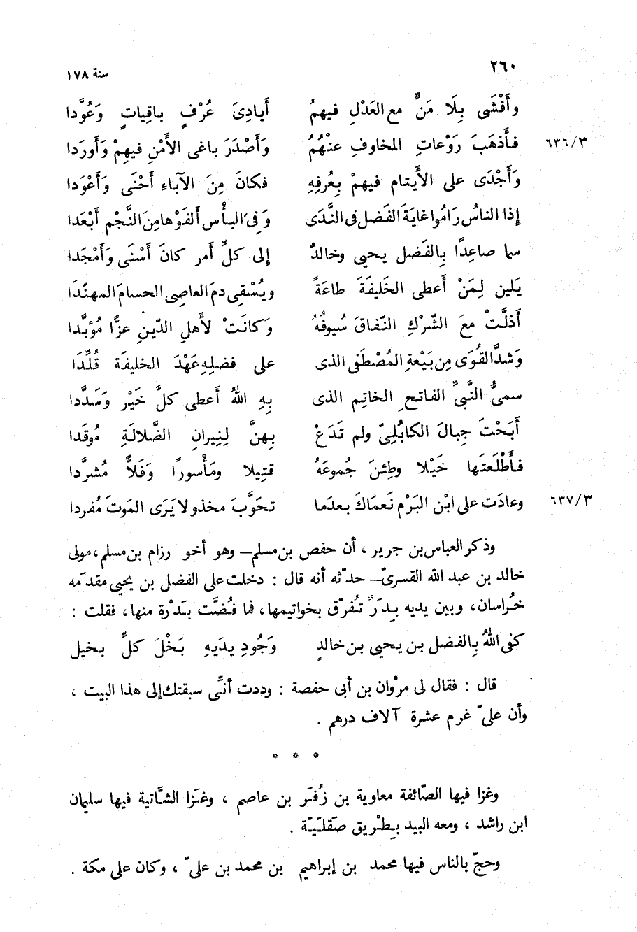 وذكر العباس بْن جرير، أن حفص بْن مسلم- وهو أخو رزام بْن مسلم، مولى خالد بْن عبد الله القسري- حدثه أنه قَالَ: دخلت على الفضل بن يحيى مقدمه خراسان، وبين يديه بدر تفرق بخواتيمها، فما فضت بدرة منها، فقلت: