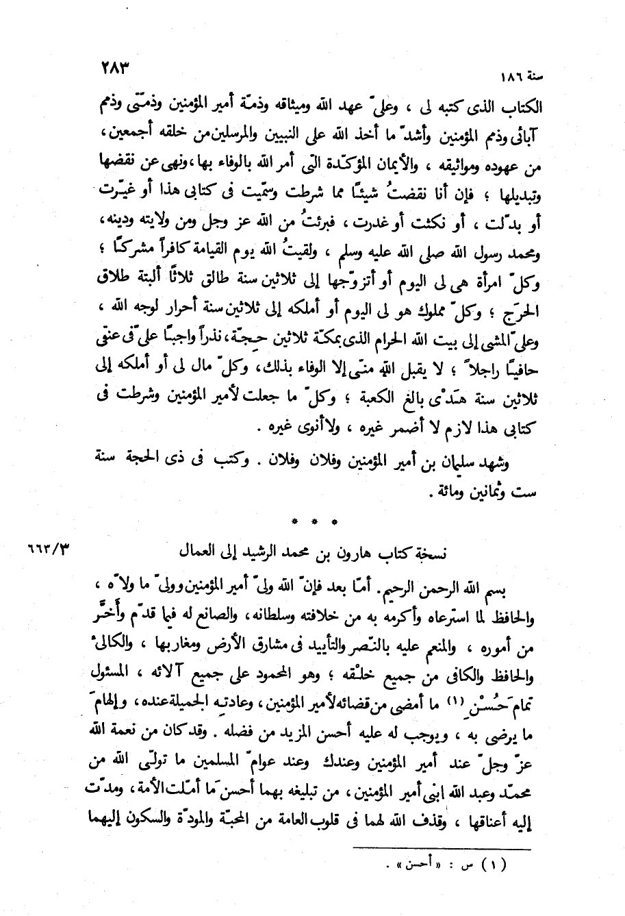 نسخة كتاب هارون بْن محمد الرشيد إلى العمال