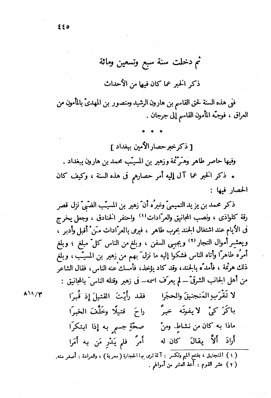 وفيها حاصر طاهر وهرثمة وزهير بْن المسيب محمد بْن هارون ببغداد.
