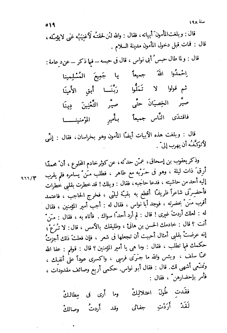 قَالَ: وبلغت هذه الأبيات أيضا المأمون وهو بخراسان، فقال: إني لأتوكفه أن يهرب إلي.