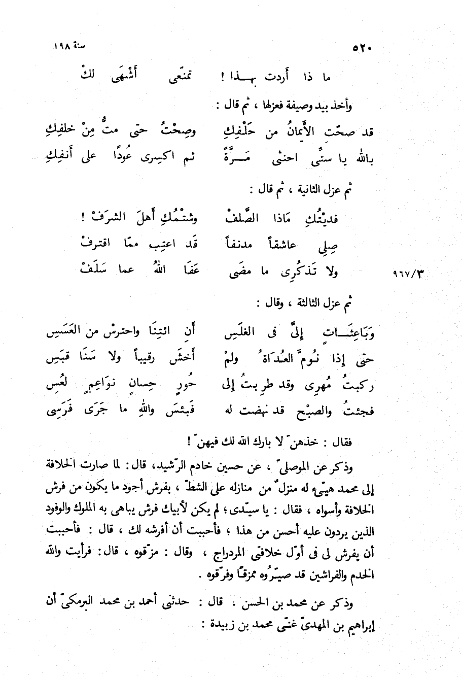 وذكر عن محمد بْن الحسن، قَالَ: حدثني أحمد بْن محمد البرمكي أن إبراهيم بن المهدى غنى محمد بن زبيده: