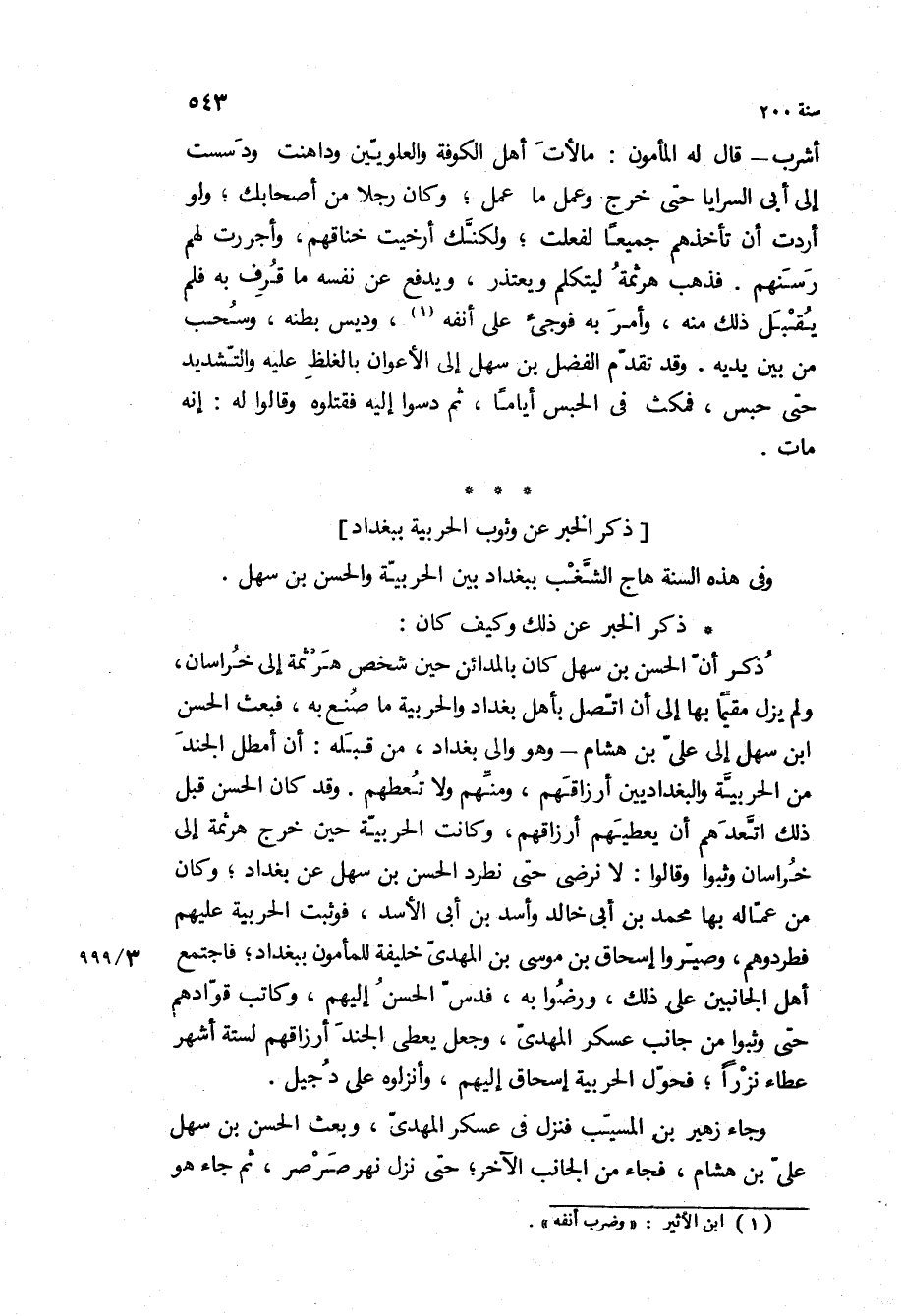 وفي هذه السنة هاج الشغب ببغداد بين الحربية والحسن بْن سهل.