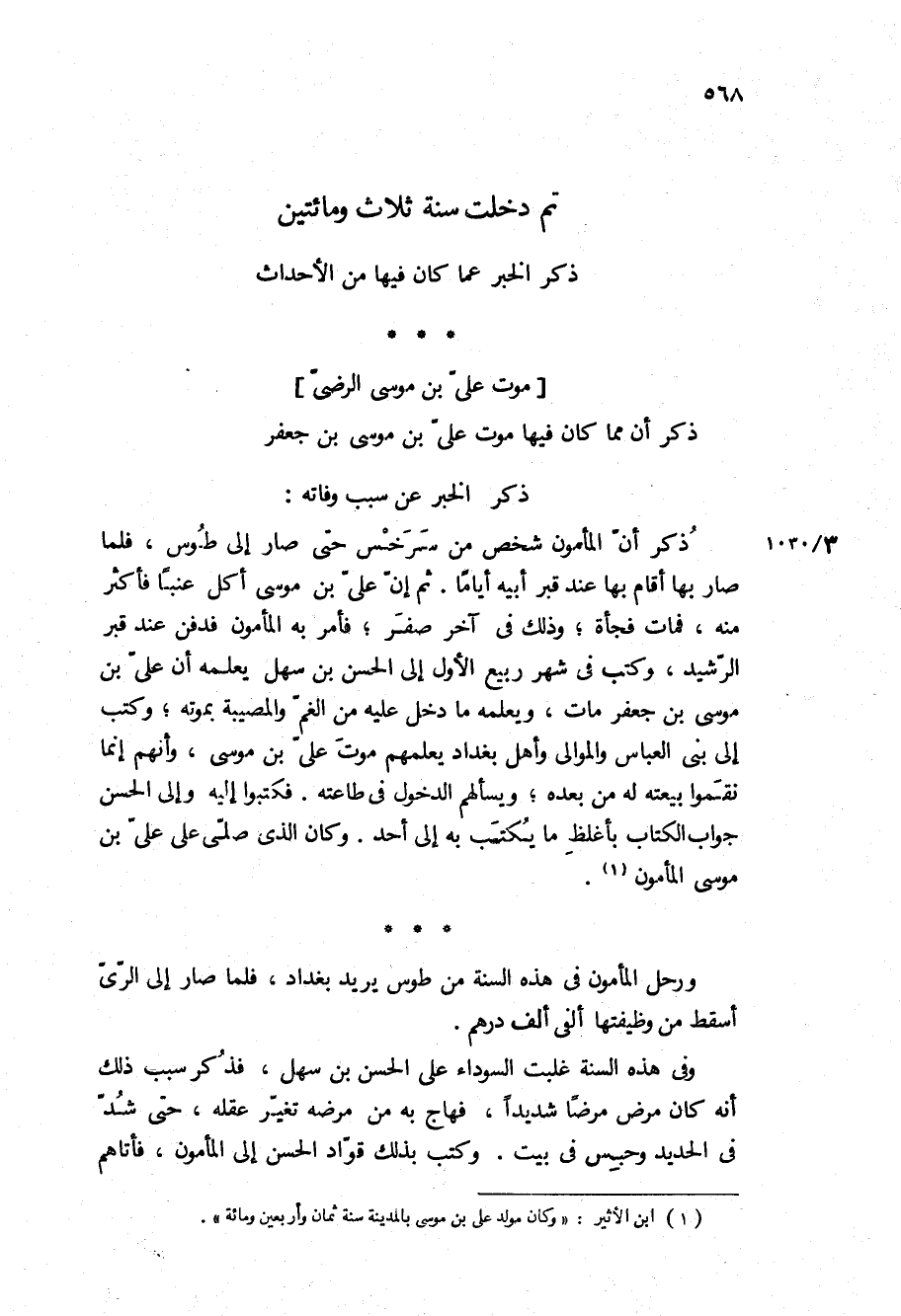 ذكر أن مما كان فيها موت علي بْن موسى بْن جعفر ذكر الخبر عن سبب وفاته: