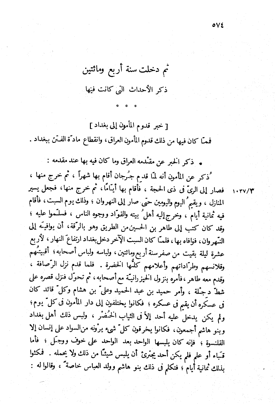 فمما كان فيها من ذلك قدوم المأمون العراق، وانقطاع مادة الفتن ببغداد.