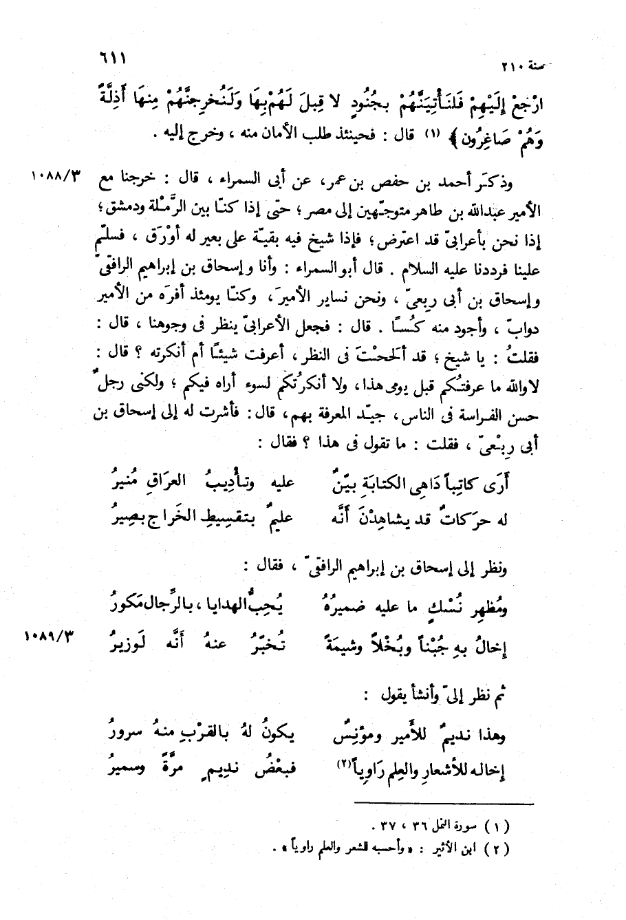 ونظر إلى إسحاق بْن إبراهيم الرافقي، فقال: