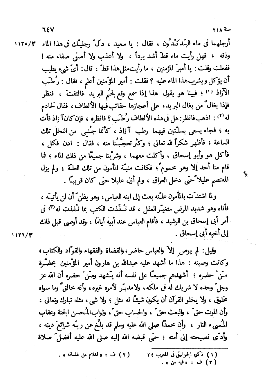 ولما اشتدت بالمأمون علته بعث إلى ابنه العباس، وهو يظن أن لن يأتيه، فأتاه وهو شديد المرض متغير العقل، قد نفذت الكتب بما نفذت له في أمر ابى إسحاق بن الرشيد، فأقام العباس عند أبيه أياما، وقد أوصى قبل ذلك إلى أخيه أبي إسحاق.