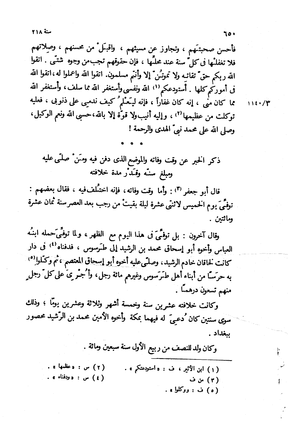 فأحسن صحبتهم، وتجاوز عن مسيئهم، واقبل من محسنهم، وصلاتهم فلا تغفلها في كل سنة عند محلها، فإن حقوقهم تجب من وجوه شتى اتَّقُوا اللَّهَ ربكم حَقَّ تُقاتِهِ وَلا تَمُوتُنَّ إِلَّا وَأَنْتُمْ مُسْلِمُونَ اتقوا الله واعملوا له، اتقوا الله في أموركم كلها أستودعكم الله ونفسي وأستغفر الله مما سلف، وأستغفر الله مما كان مني، إنه كان غفارا، فإنه ليعلم كيف ندمي على ذنوبي، فعليه توكلت من عظيمها، وإليه أنيب ولا قوة إلا بالله، حسبي الله ونعم الوكيل، وصلى الله على محمد نبي الهدى والرحمة!.