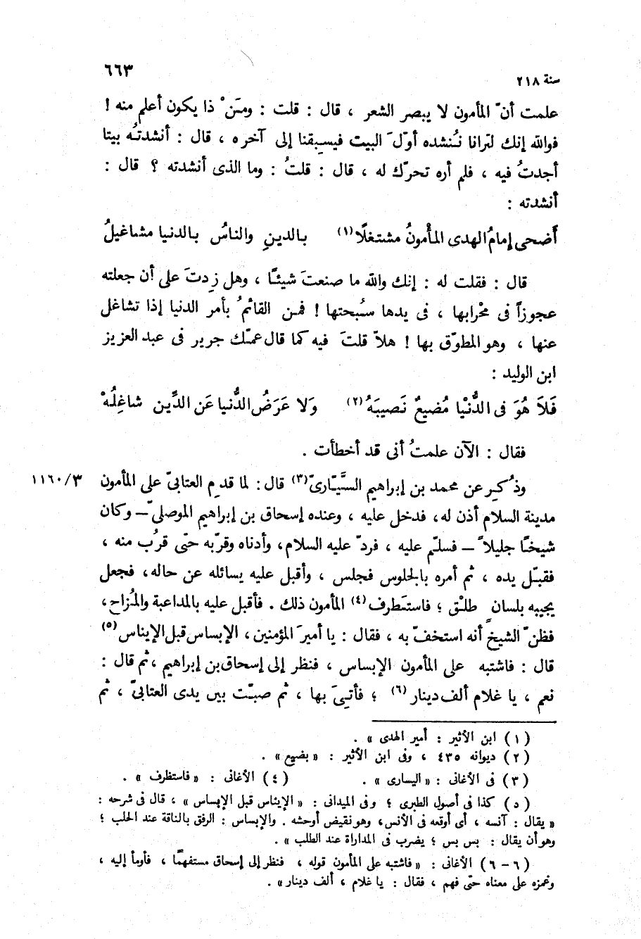 وذكر عن محمد بن ابراهيم السيارى قَالَ: لما قدم العتابي على المأمون مدينة السلام أذن له، فدخل عليه، وعنده إسحاق بْن إبراهيم الموصلي- وكان شيخا جليلا- فسلم عليه، فرد ع، وأدناه وقربه حتى قرب منه، فقبل يده، ثم أمره بالجلوس فجلس، وأقبل عليه يسائله عن حاله، فجعل يجيبه بلسان طلق، فاستطرف المأمون ذلك، فأقبل عليه بالمداعبة والمزاح، فظن الشيخ أنه استخف به، فقال: يا أمير المؤمنين، الإبساس قبل الإيناس قَالَ: فاشتبه على المأمون الإبساس، فنظر إلى إسحاق بْن إبراهيم، ثم قَالَ: