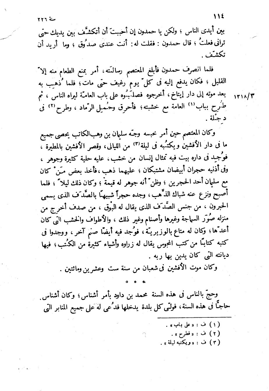وكان موت الأفشين في شعبان من سنة ست وعشرين ومائتين.