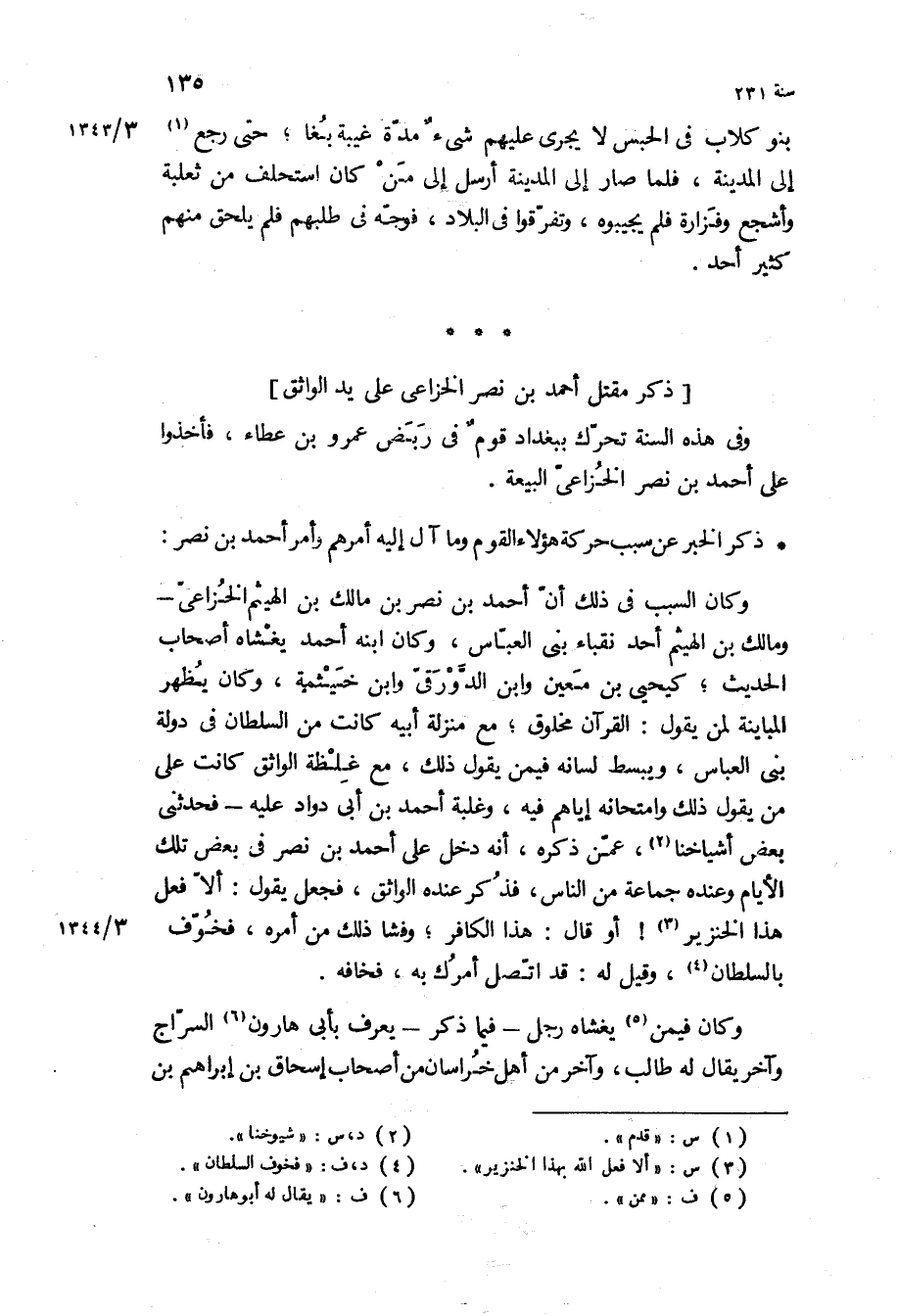 ذكر مقتل احمد بن نصر الخزاعي على يد الواثق