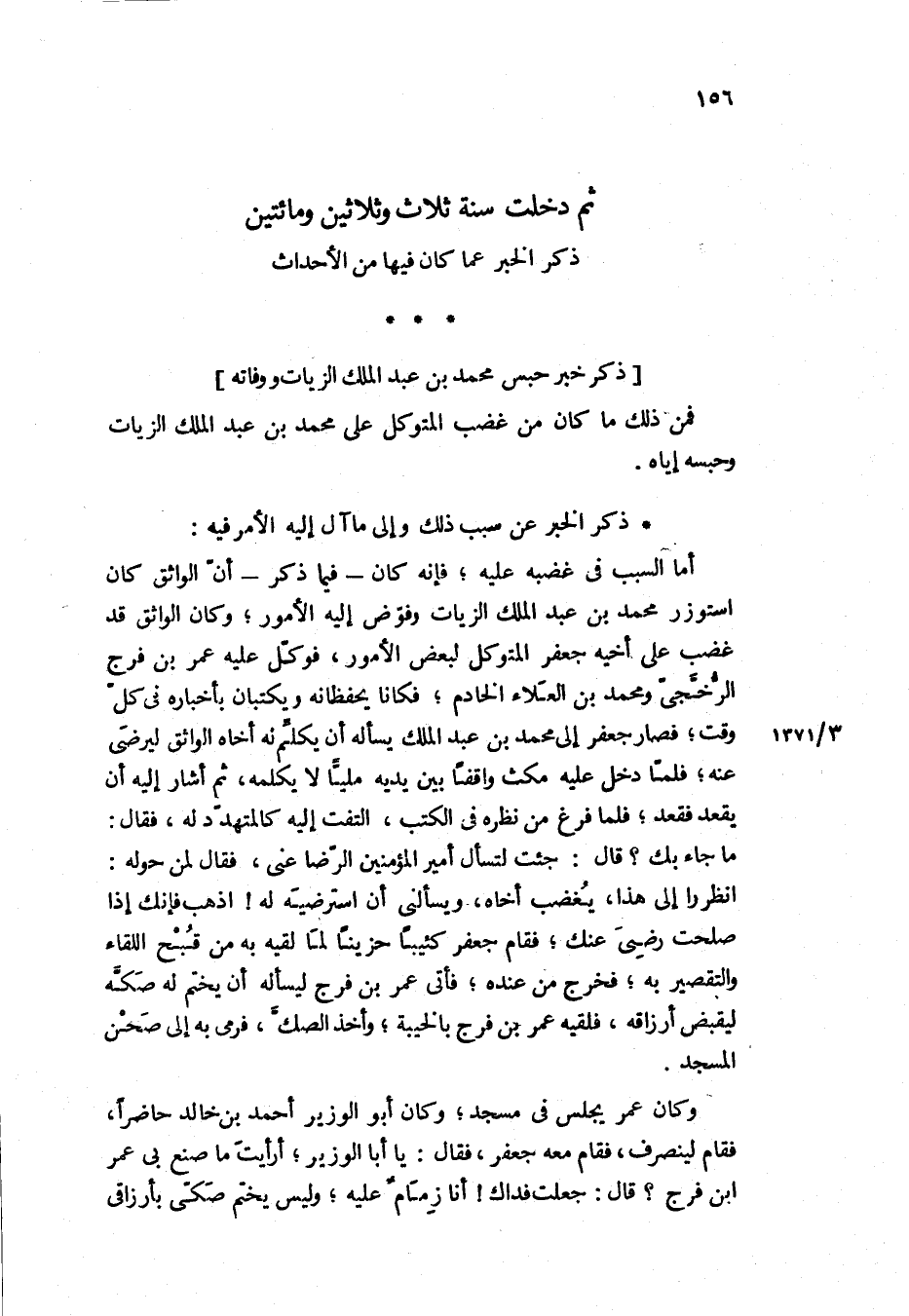 ذكر خبر حبس محمد بن عبد الملك الزيات ووفاته