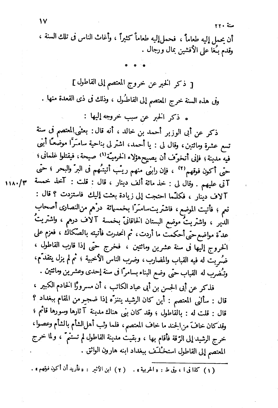 . ذكر الخبر عن خروج المعتصم الى القاطول