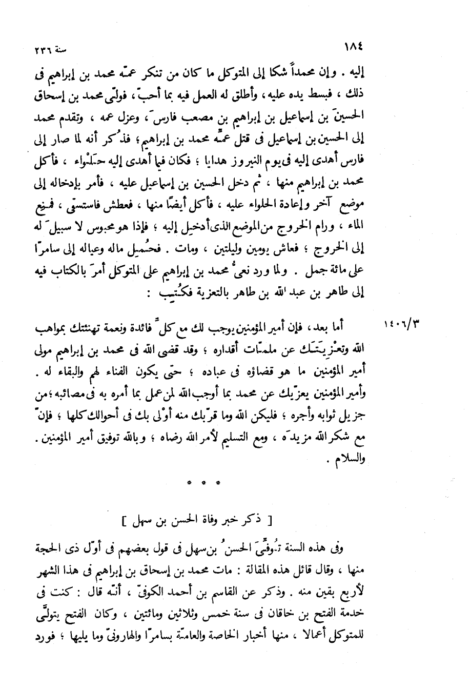 . ذكر خبر وفاه الحسن بن سهل