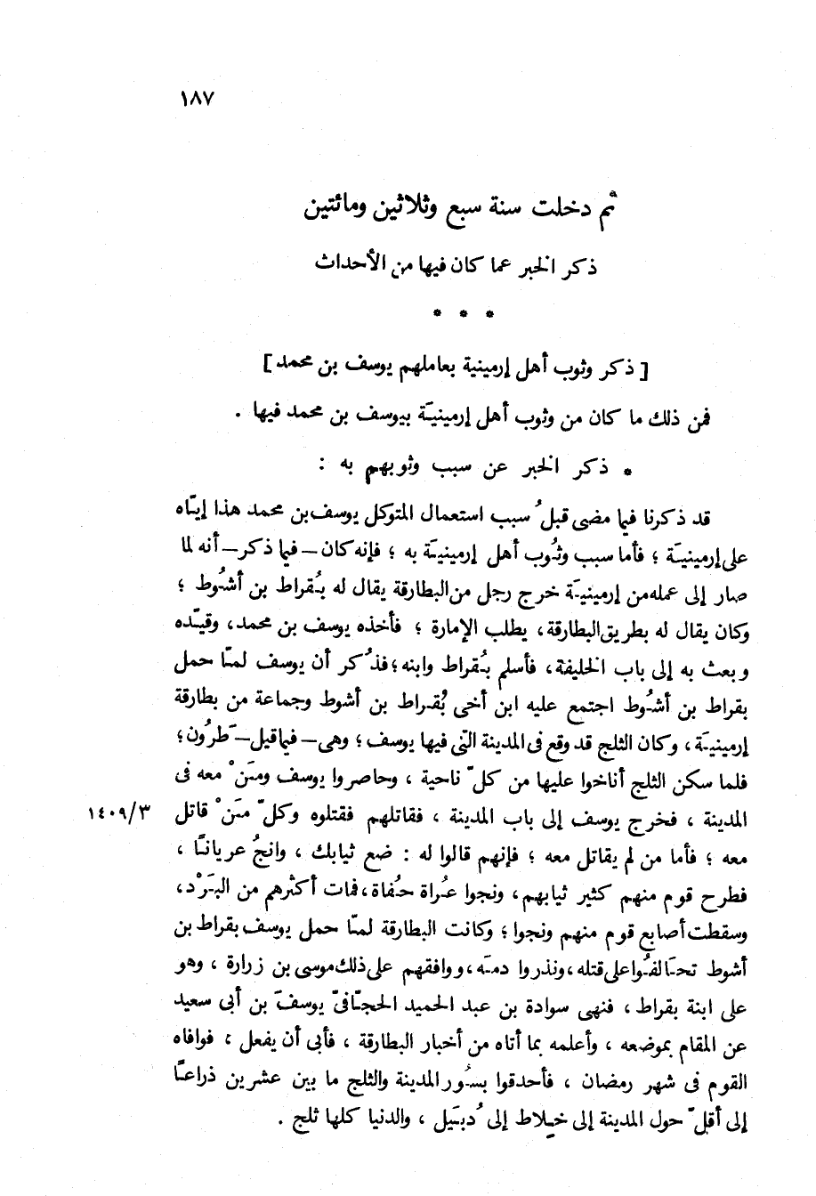 ذكر وثوب اهل أرمينية بعاملهم يوسف بن محمد