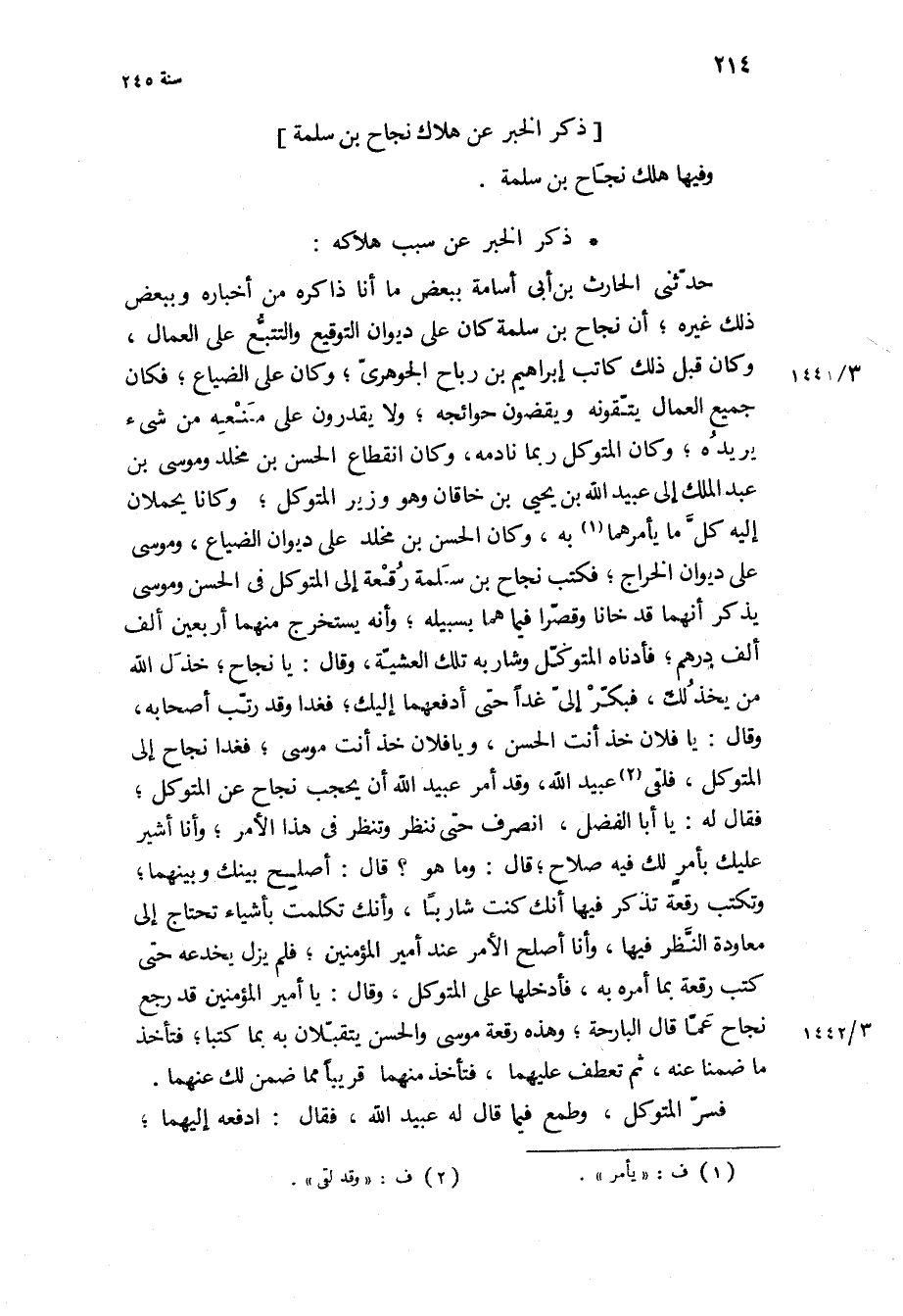 ذكر الخبر عن هلاك نجاح بن سلمه