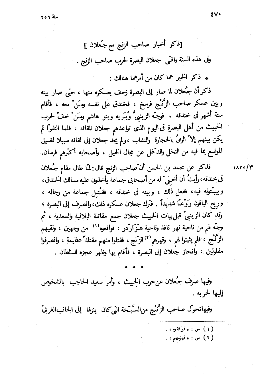 وفيها تحول صاحب الزنج من السبخة التي كان ينزلها إلى الجانب الغربي