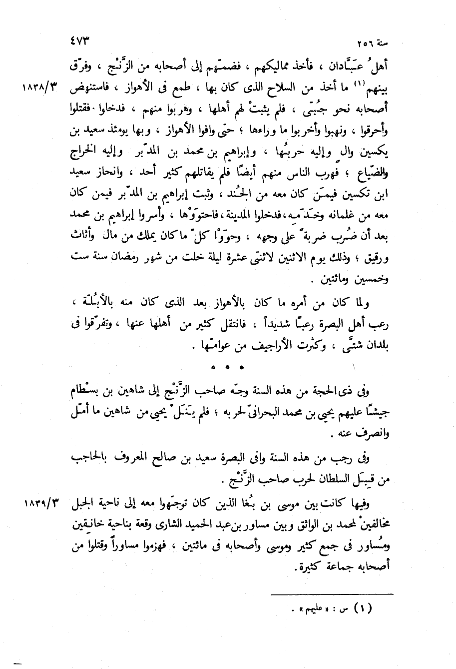 وفي رجب من هذه السنة وافى البصرة سعيد بن صالح المعروف بالحاجب من قبل السلطان لحرب صاحب الزنج.