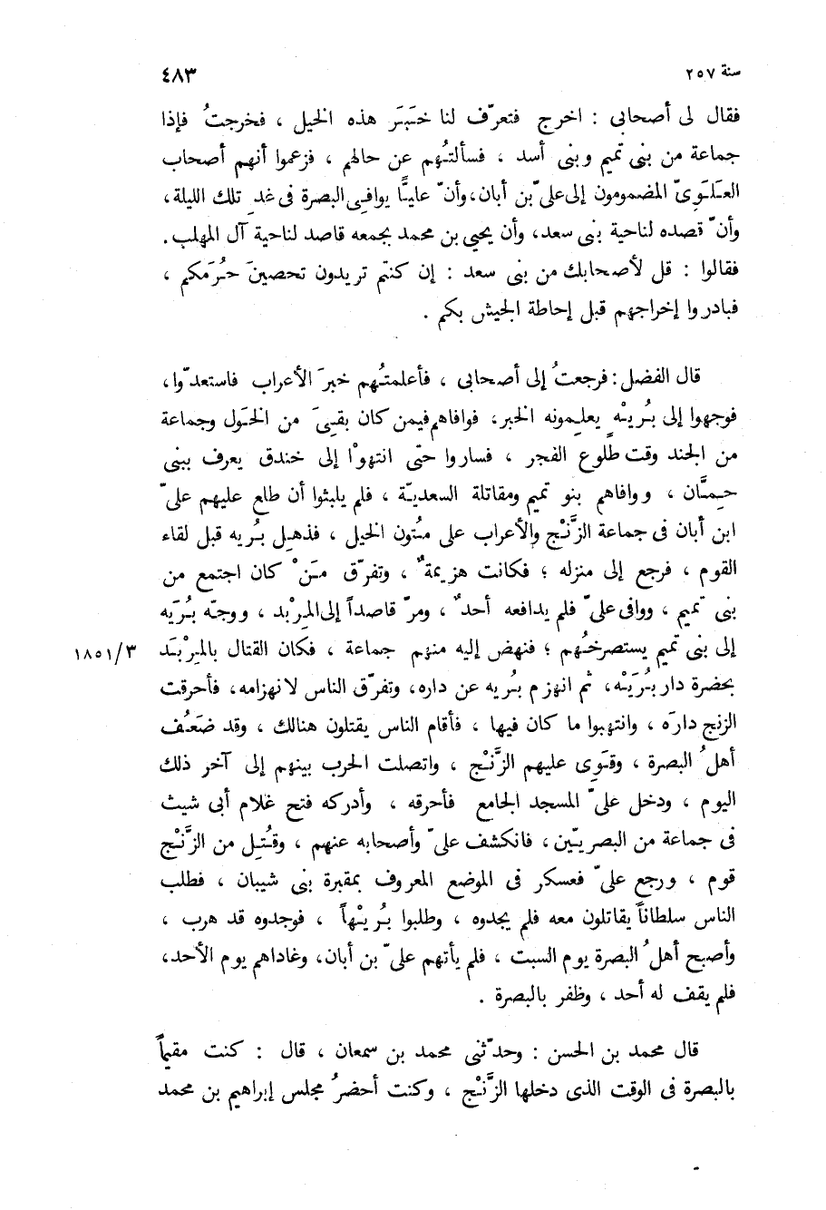 قال محمد بن الحسن: وحدثني محمد بن سمعان، قال: كنت مقيما بالبصرة في الوقت الذي دخلها الزنج، وكنت أحضر مجلس إبراهيم بن محمد