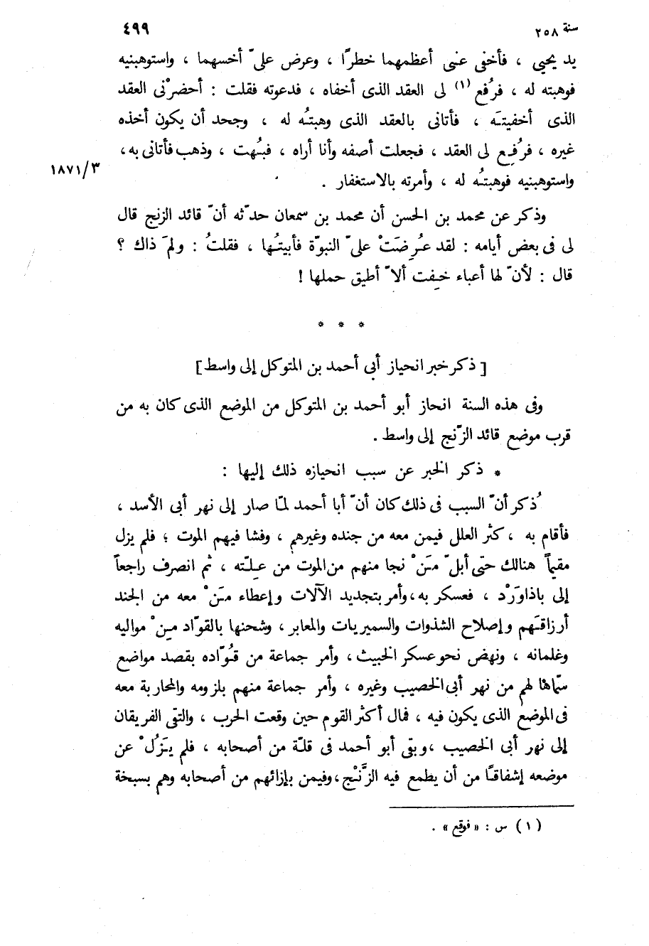 وفي هذه السنة انحاز أبو أحمد بن المتوكل من الموضع الذي كان به من قرب موضع قائد الزنج إلى واسط.