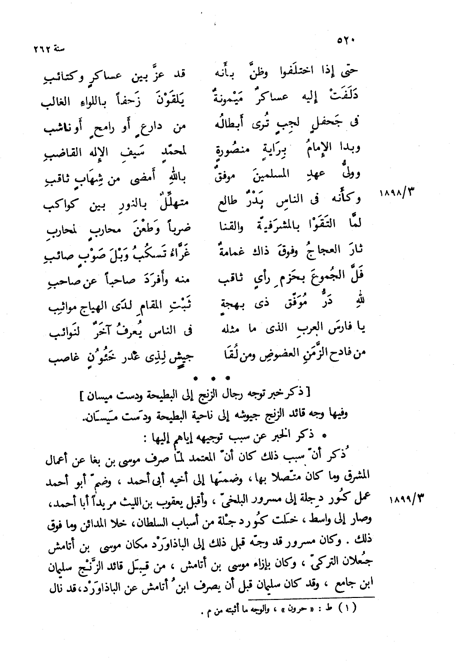 وفيها وجه قائد الزنج جيوشه إلى ناحية البطيحة ودست ميسان.