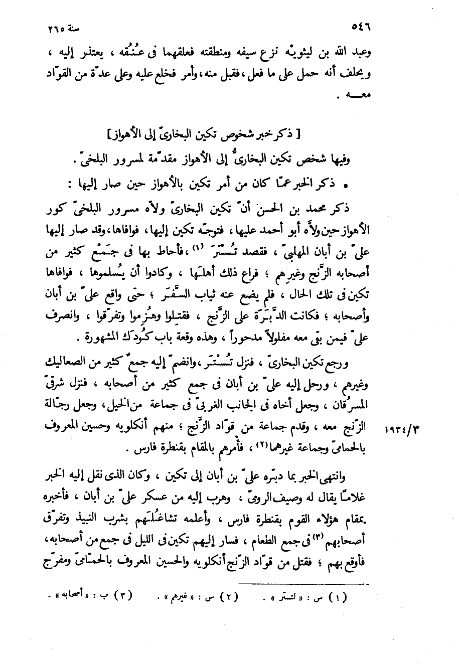 وفيها شخص تكين البخاري إلى الأهواز مقدمة لمسرور البلخي.