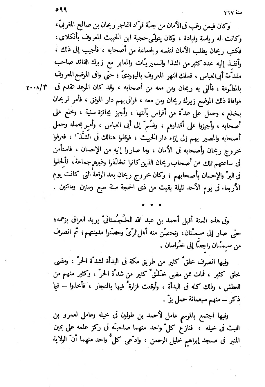 وفي هذه السنة أقبل أحمد بن عبد الله الخجستاني يريد العراق بزعمه، حتى صار إلى سمنان، وتحصن منه أهل الري وحصنوا مدينتهم، ثم انصرف من سمنان راجعا إلى خراسان.