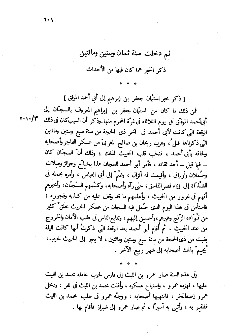 ذكر خبر استئمان جعفر بن ابراهيم الى ابى احمد الموفق