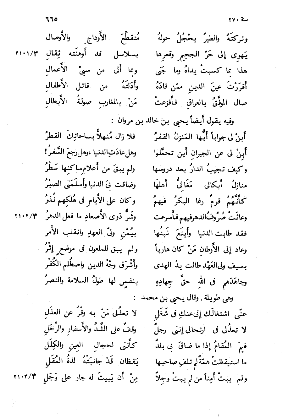 وفيه يقول أيضا يحيى بن خالد بن مروان:
