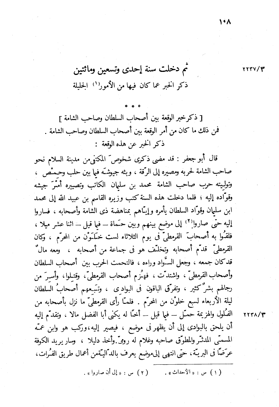 فمن ذلك ما كان من امر الوقعه بين اصحاب السلطان وصاحب الشامة.