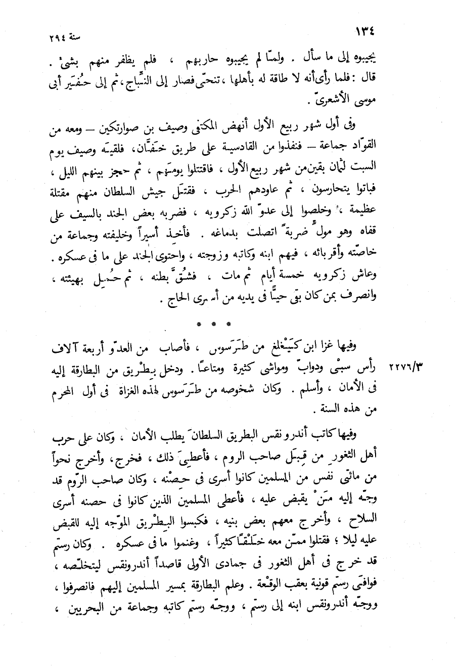 وفيها غزا ابن كيغلغ من طرسوس، فأصاب من العدو اربعه آلاف راس سبى ودواب ومواشى كثيره ومتاعا ودخل بطريق من البطارقه اليه في الامان، واسلم وكان شخوصه من طرسوس لهذه الغزاة في أول المحرم من هذه السنه.