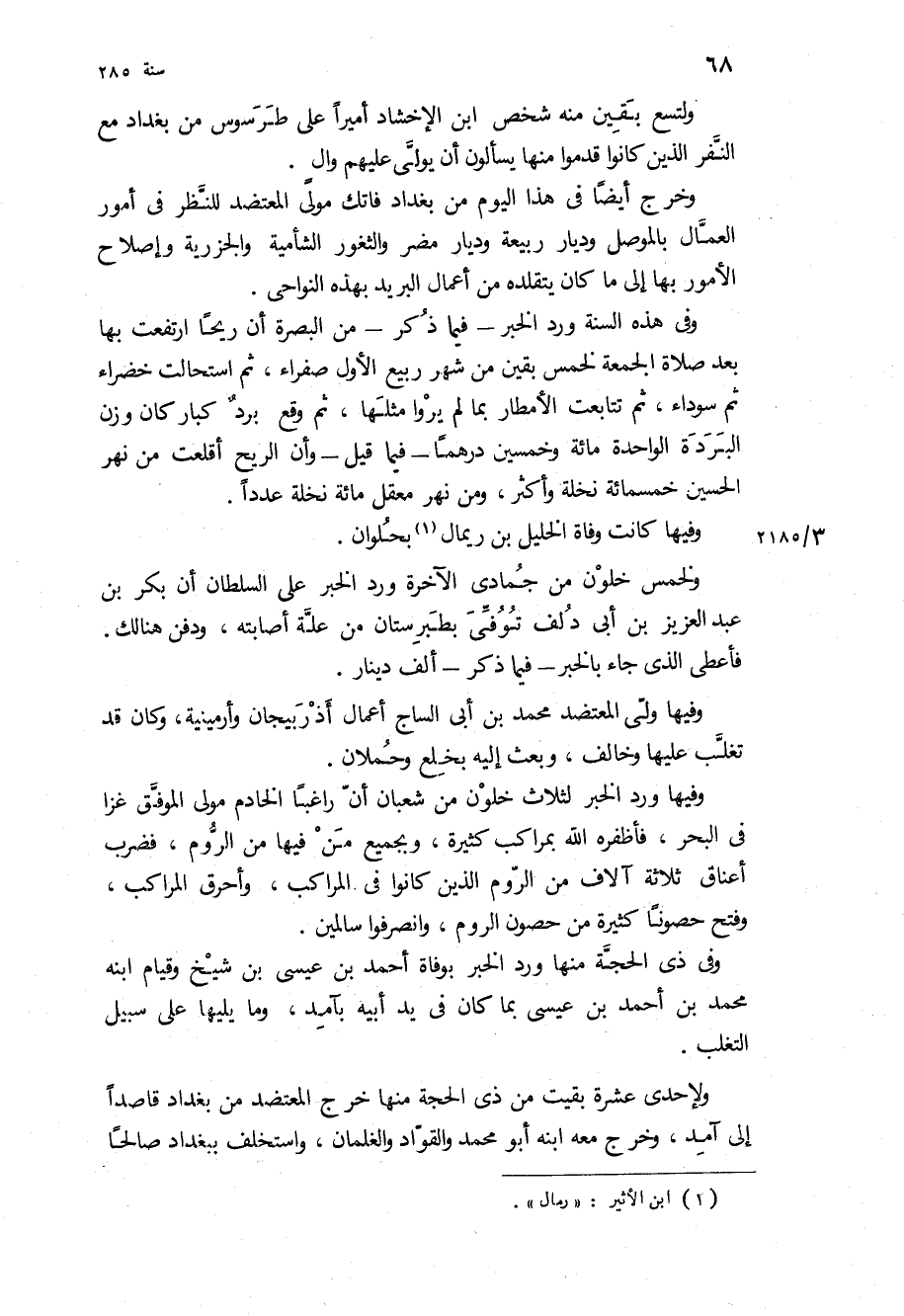 وفيها كانت وفاه الخليل بن ريمال بحلوان.