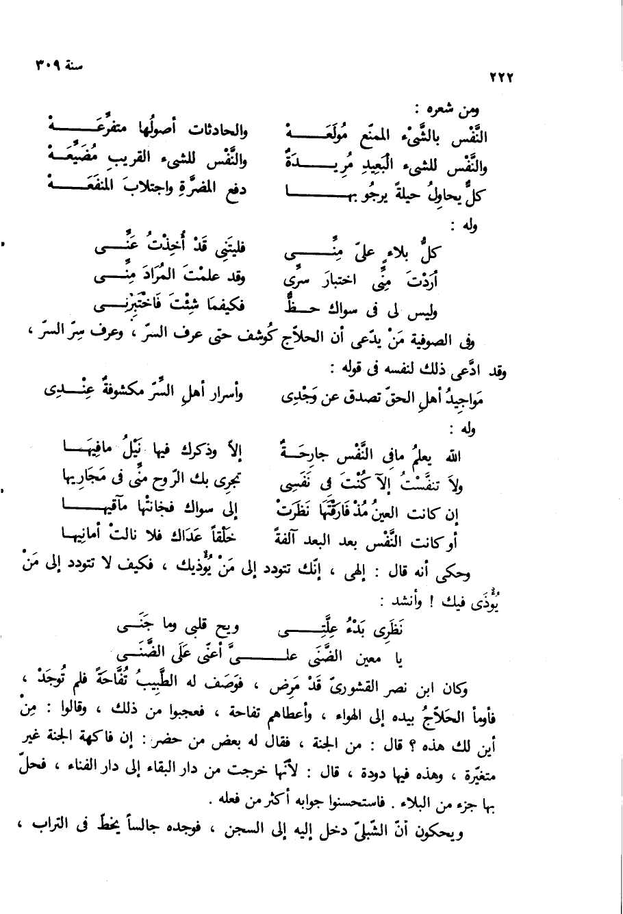 ويحكون ان الشبلى دخل اليه الى السجن، فوجده جالسا يخط في التراب،