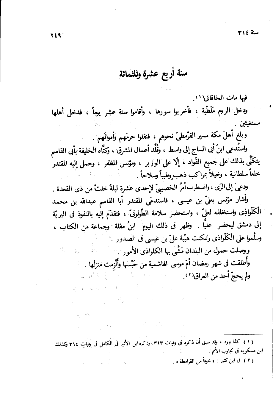 ودعى الى الري، واضطرب امر الخصيبى لإحدى عشره ليله خلت من ذي القعده.