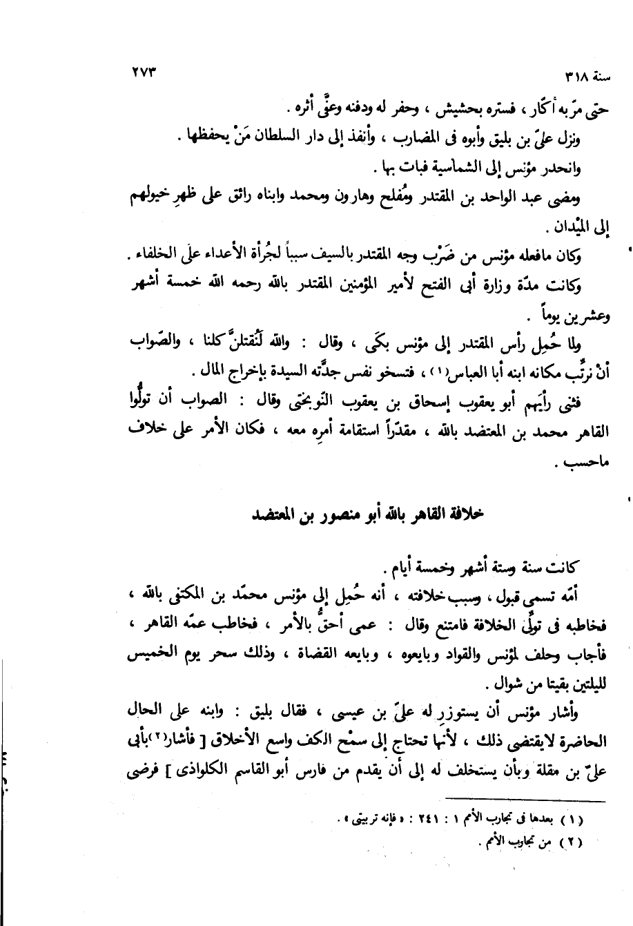 فثنى رأيهم ابو يعقوب إسحاق بن يعقوب النوبختى وقال: الصواب ان تولوا القاهر محمد بن المعتضد بالله، مقدرا استقامه امره معه، فكان الأمر على خلاف ما حسب