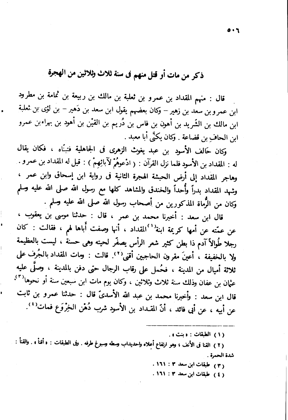 قال ابن سعد: وأخبرنا محمد بن عبد الله الأسدي قَالَ: حَدَّثَنَا عَمْرُو بْنُ ثَابِتٍ عَنْ أَبِيهِ، عن ابى فائد، ان المقداد بن الأسود شرب دهن الخروع فمات