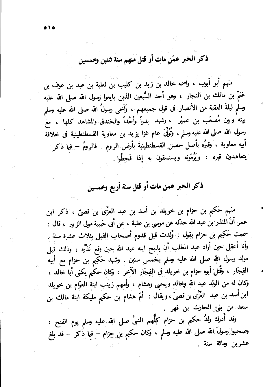 وقد ادرك ولد حكيم بن حزام كلهم النبي ص يوم الفتح، وصحبوا رسول الله ص، وكان حكيم بن حزام- فيما ذكر- قد بلغ عشرين ومائه سنه