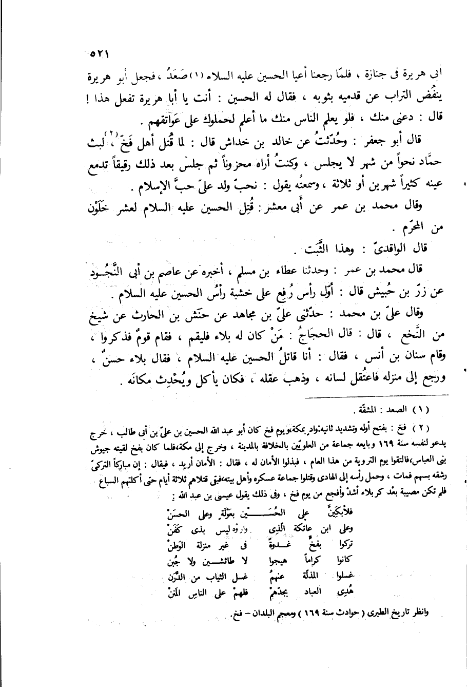 وقال محمد بن عمر عن ابى معشر: قتل الحسين ع لعشر خلون من المحرم.