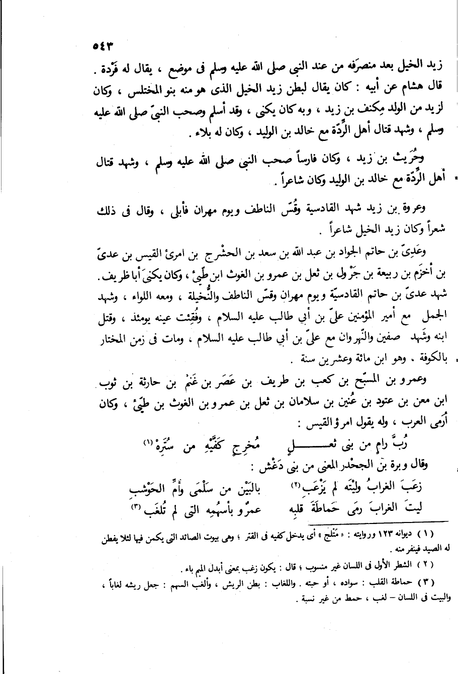 وعروه بن زيد شهد القادسية وقس الناطف ويوم مهران فابلى، وقال في ذلك شعرا وكان زيد الخيل شاعرا.
